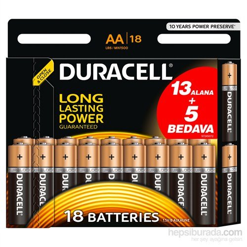 Duracell Alkalin AA Kalem Pil (13+5) 18''li Paket